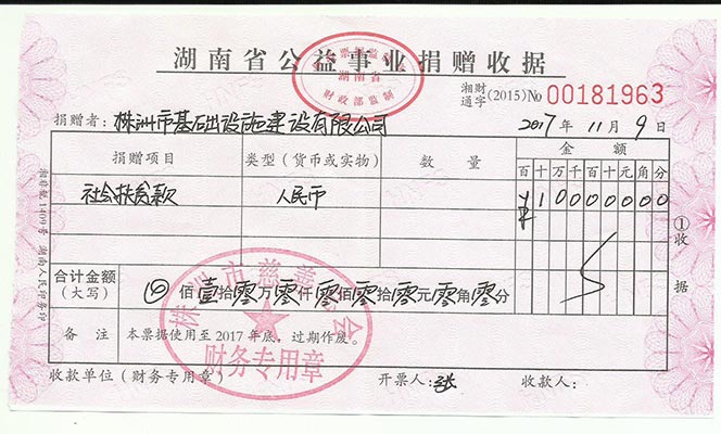 株洲市基礎(chǔ)設(shè)施建設(shè)有限公司將"解人之所困,幫人所憂"的扶貧理念落實(shí)到實(shí)際中,將扶貧款打到株洲市慈善總會(huì)賬戶中,貢獻(xiàn)出企業(yè)的一份力量。